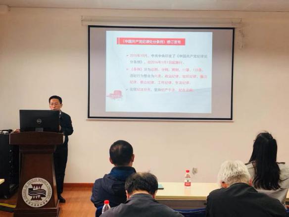 随后,王新厚书记为全体党员详细解读了《中国共产党纪律处分条例》,他主要从《中国共产党纪律处分条例》修订历程和修订内容两部分展开讲解。他讲道,1997年2月,中央发布实施了《中国共产党纪律处分条例(试行)》;2003年12月《中国共产党纪律处分条例》正式发布施行;2015年10月中共中央印发了《中国共产党纪律处分条例》,自2016年1月1日起施行;2018年8月,中共中央印发了《中国共产党纪律处分条例》,自2018年10月1日起施行。《中国共产党纪律处分条例》分为总则、分则、附则,11章,142条。违纪行为分为六类:政治纪律、组织纪律、廉洁纪律、群众纪律、工作纪律、生活纪律。修订后政治性更强,内容更科学,逻辑更严谨,指导性和可操作性更强。