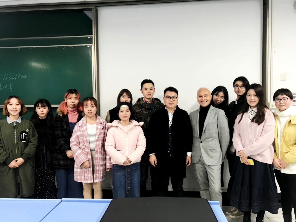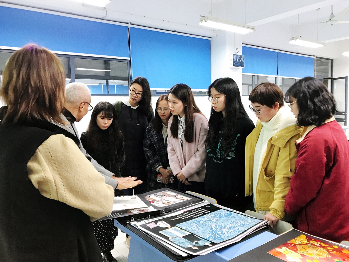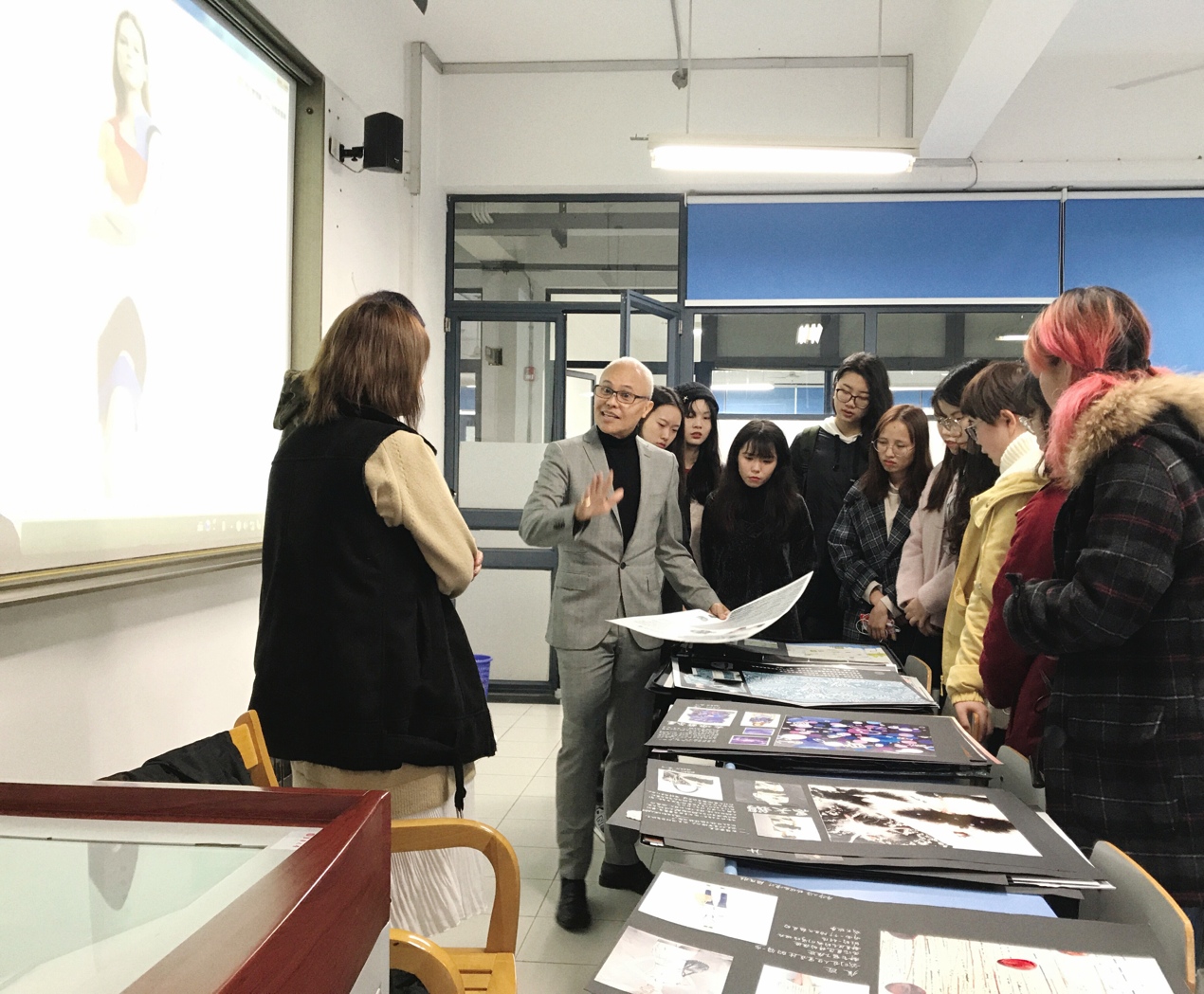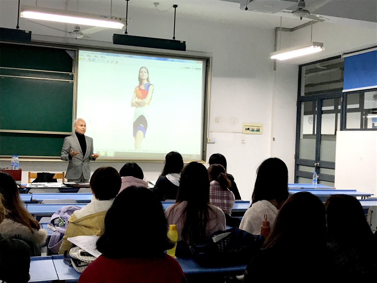 接着,大师以自己所设计的作品为例,通过模特图片展示的方式,为同学详细地介绍了图案与时装款式、面料的结合方式,同时由于本次讲座以英文授课形式进行,纺设班学姐孙伟珏担任起全程的英文翻译工作,使同学们更加清晰地理解讲座内容,受益更多,收获更大。