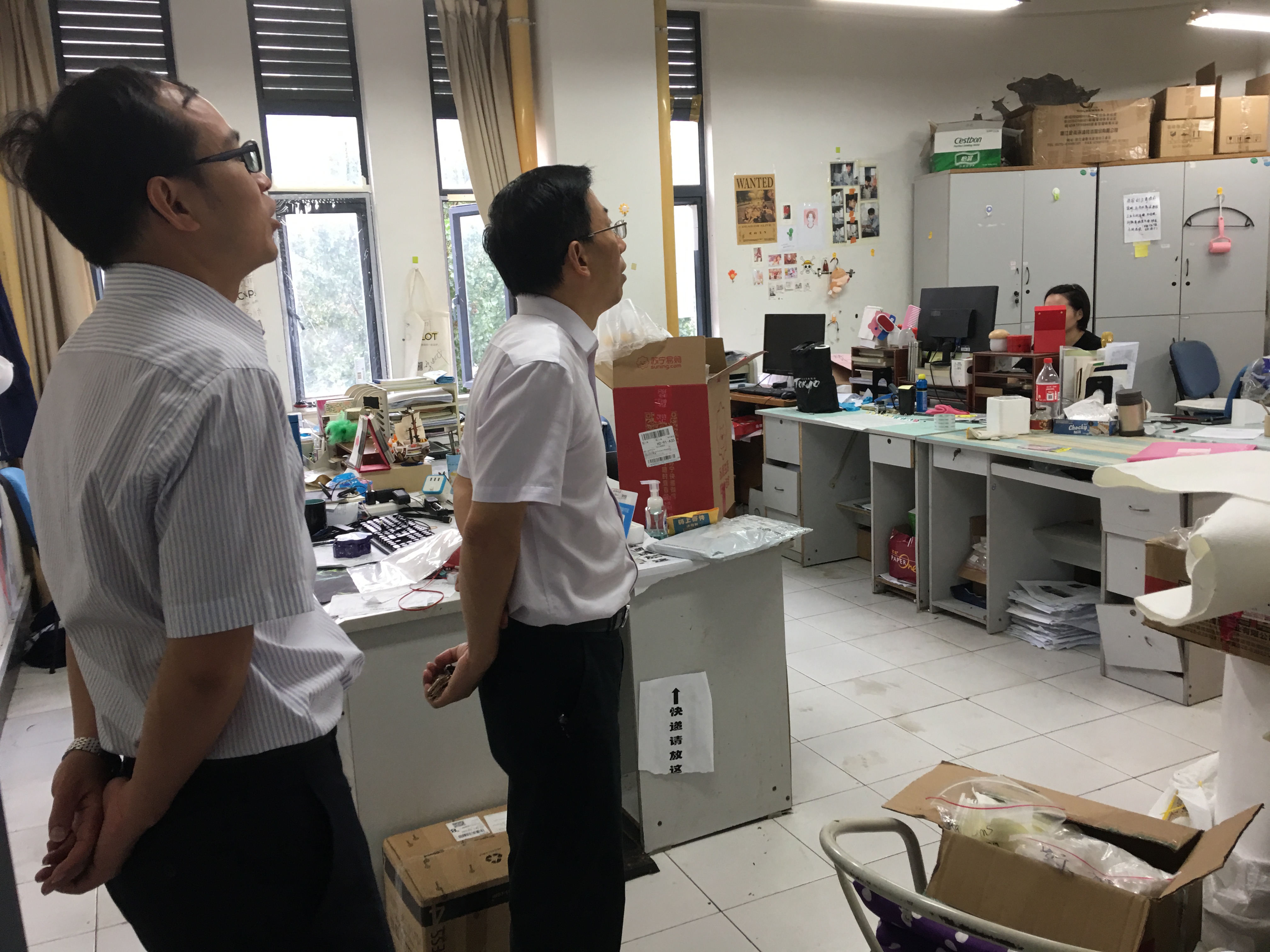 为确保乐玩 实验室安全,迎接新学期,纺织乐玩 安全工作小组于8月29日上午新学期第一天开展了实验室和学生工作室安全现场检查。王新厚书记带队对乐玩 楼实验室、工作室和实训楼实验室进行安全检查,王富军副院长、刘雯玮副书记及安全工作小组成员陪同检查。