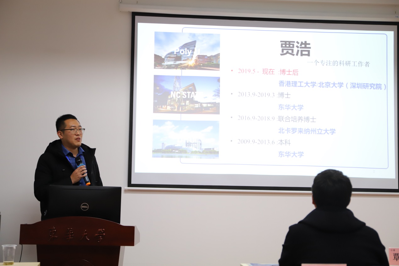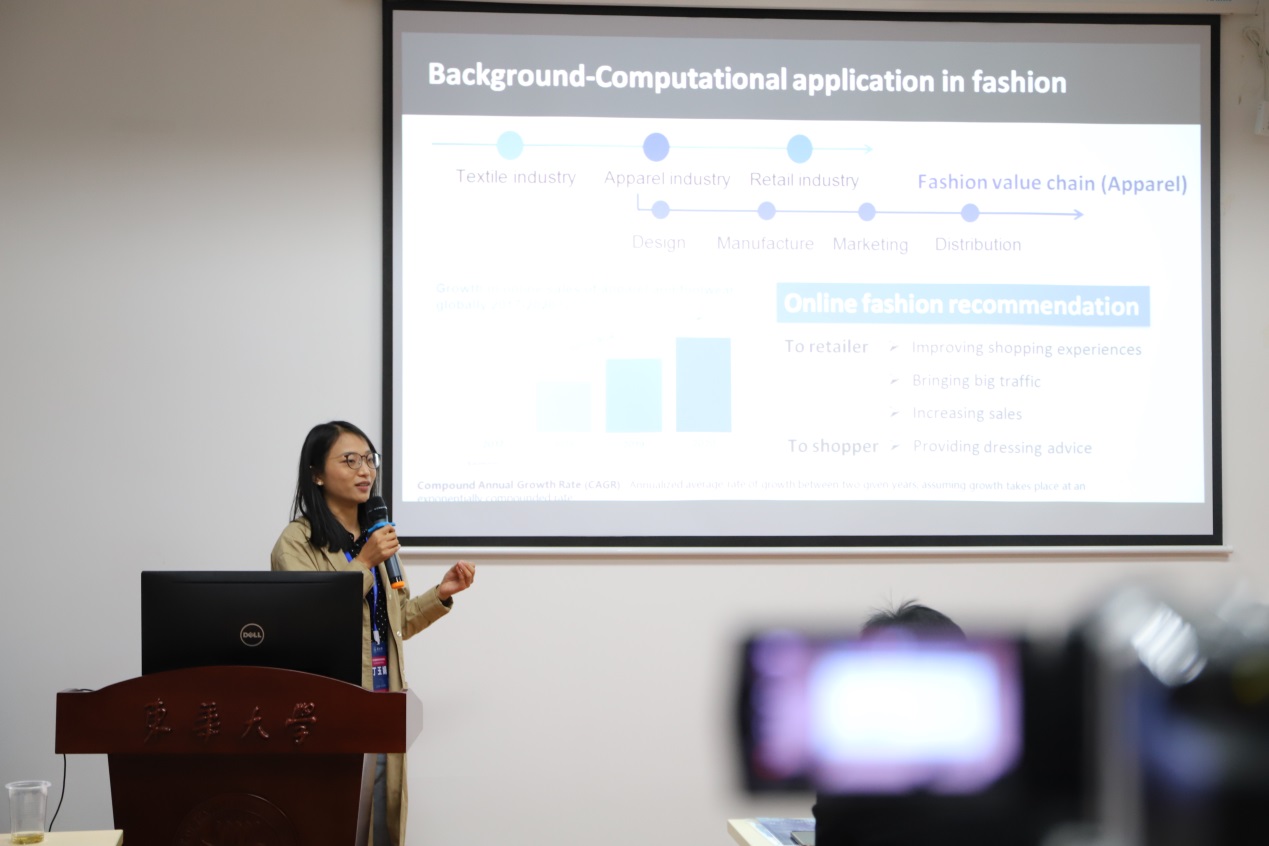 接下来来自加拿大多伦多大学、英属哥伦比亚大学、香港理工大学、日本京都工艺纤维大学的8位青年学者做了精彩的学术报告。陈鹤予博士分享了树皮基纳米纤维素的制备及应用,丁玉娟博士介绍了基于图网络的时尚推荐,贾浩博士则就集热纺织品和钠离子电池负极材料展开了详细解说,侯磊博士汇报了他在柔性可穿戴汗液传感器制备及人体健康检查方面的研究。王成博士、王宇翔博士、王永亮博士、葛兰博士则分别汇报了他们在介孔纤维素材料、仿生隔热材料、纳米传感在单分子力学上的研究以及智能发光面料设计方面的研究进展。。青年学者们的报告引起了乐玩游戏 师生的浓厚兴趣,大家纷纷提问,报告人一一做了回答,学术思想上的碰撞为这次学术交流增添了一抹亮丽色彩。