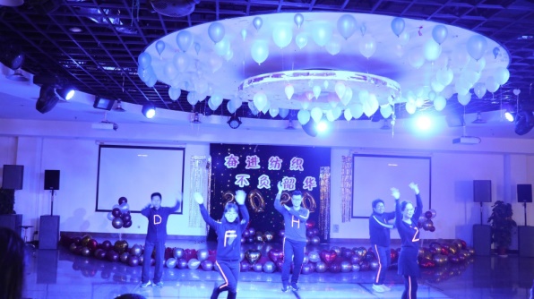 新春联欢会在针织与服装系的教师们带来的欢快荧光舞《PANAMA》中拉开帷幕,在闪烁的灯光中穿着荧光材质服装舞蹈的针织系教师们展现了他们满满的青春活力。
