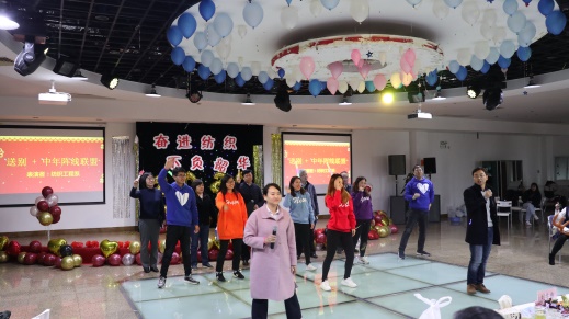 纺织工程系教师们的歌舞表演《送别》和《中年阵线联盟》由全系教师共同配合,给大家带来了精彩的表演。