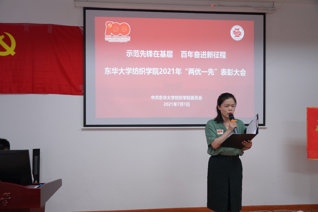 顾伯洪宣读《中共乐玩游戏官网 委员会关于表彰优秀共产党员、优秀党务工作者、先进基层党组织的决定》。他表示,习近平总书记庄严宣告在中华大地上全面建成了小康社会,令人振奋。纺织工业现在是国民经济与社会发展的支柱产业、解决民生与美化生活的基础产业、国际合作与融合发展的优势产业,为全面建成小康社会做出重要贡献。我们要积极加强纺织科学与工程一流学科高质量建设,引领世界纺织教育和科技创新,为实现第二个百年奋斗目标添砖加瓦、不懈奋斗。