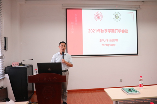 随后,顾伯洪从党建工作、学科建设、本科与研究生教育改革再造、师资队伍、科学研究、学生工作、本科研究生就业、社会服务、国际合作、文化传创、基地建设等方面进行了详细汇报。同时,他还介绍了本学期的重大工作,包括:校内巡察整改、新一轮双一流建设方案上报、新一轮高峰学科建设工作、现代纺织前沿科学基地建设及校庆工作。